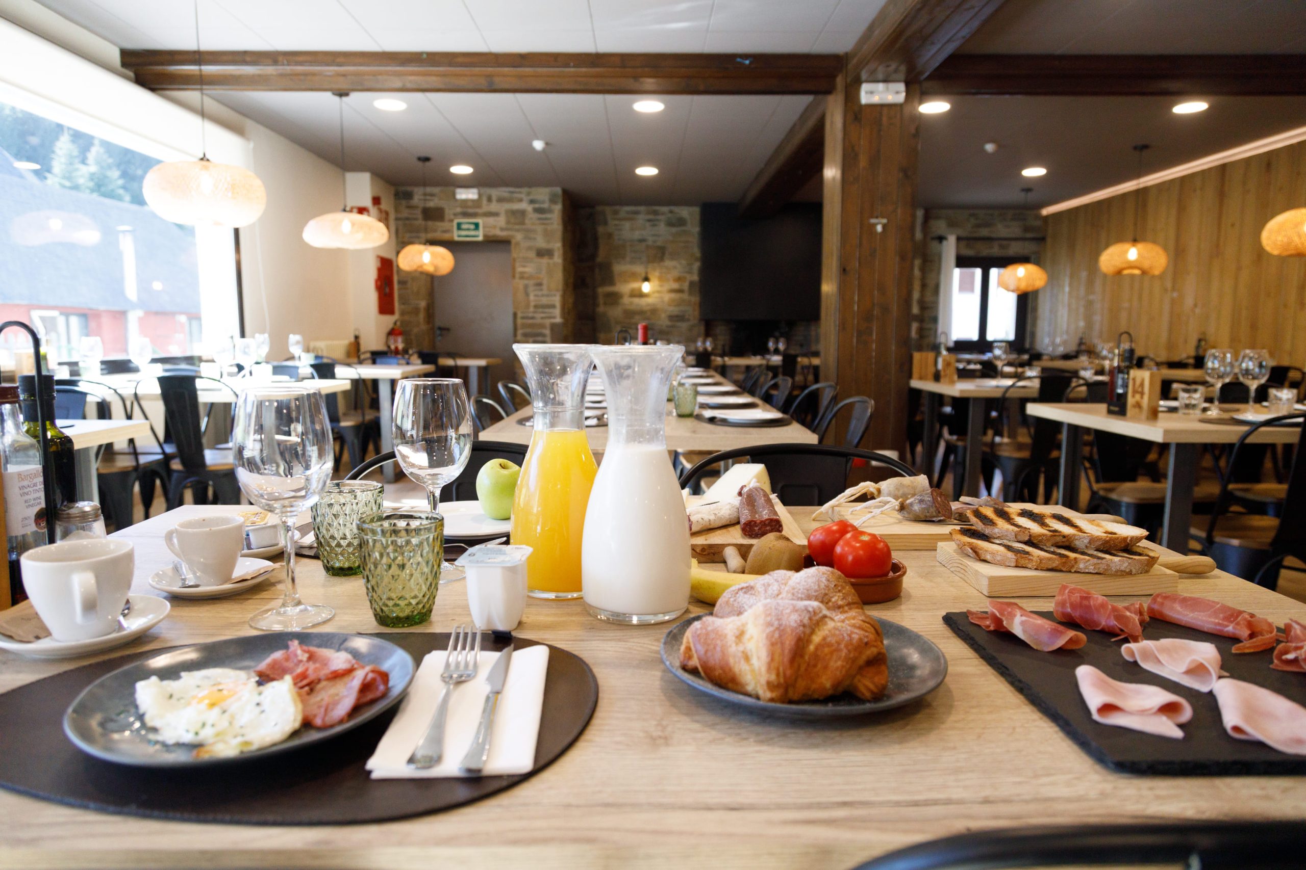 Dans la salle du restaurant, nous vous proposerons un petit-déjeuner buffet avec les meilleurs produits de la région, de la charcuterie, des yaourts, des fromages, etc. tout en admirant les vues fantastiques sur la station de ski et les montagnes de Port del Comte.