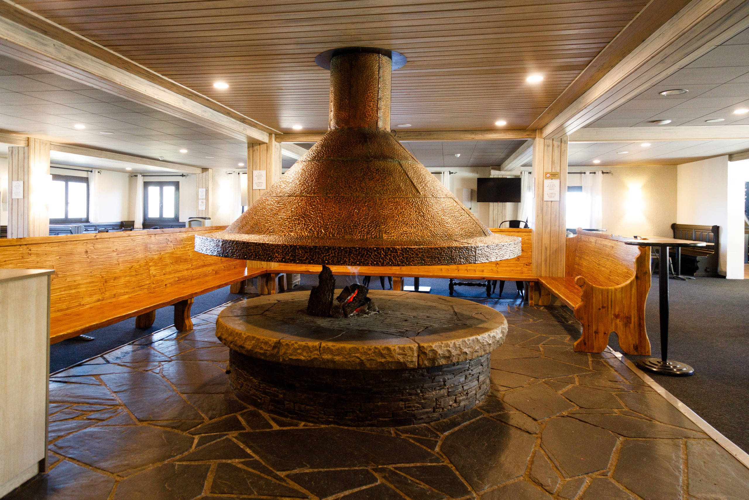 Nous avons des coins différents et zones communes, et le large salon avec une grande cheminée ronde au centre, tous conçus pour se détendre et passer un agréable moment en compagnie de vos compagnons, de votre famille ou de votre partenaire.
